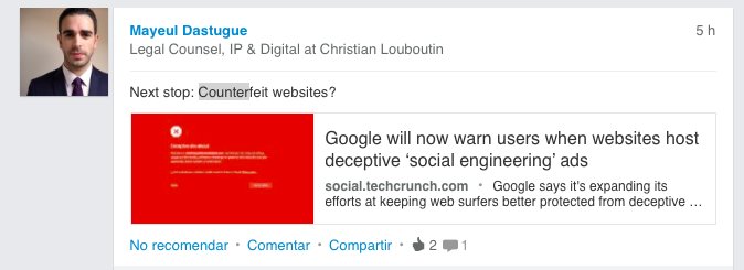 entonces te interesará seguir a la cuenta de twitter desenmascarame (que tuitea automáticamente cada vez que un nuevo sitio web FAKE es detectado y avisa a la marca), o darte de alta en el servicio avisame, donde obtendrás todos los metadatos del sitio web afectando a tu marca.